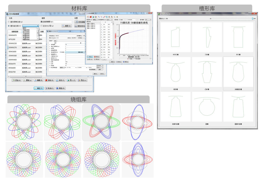 这些都是EasiMotor希望帮助电机生产厂商和专业人员解决的问题。作为目前国内唯一一款具有自主知识产权的电机有限元仿真分析工具,EasiMotor长期以来以解决电机工厂的实际需求为开发出发点,以设计、验证、改进闭$不为持续提升手段。它结合了电机磁路设计的快速性和有限元分析的精确性,并融入优化网格剖分技术、电机驱动控制模块和有限元自动生成功能,可以快速实现电机的优化设计、准确分析和虚拟样机测试,并能够自动生成性能MAP等测试结果。目前支持20款电机类型的快速设计和通用有限元分析,全中向导式用户界面,使初学者可以迅速上手,通过简单的操作得到精确的分析结果。